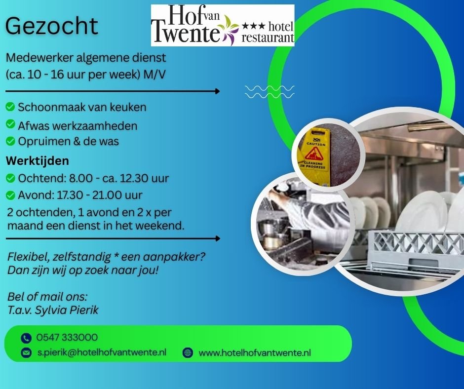 Wij zijn op zoek naar een medewerker algemene dienst (10–16 uur per week).